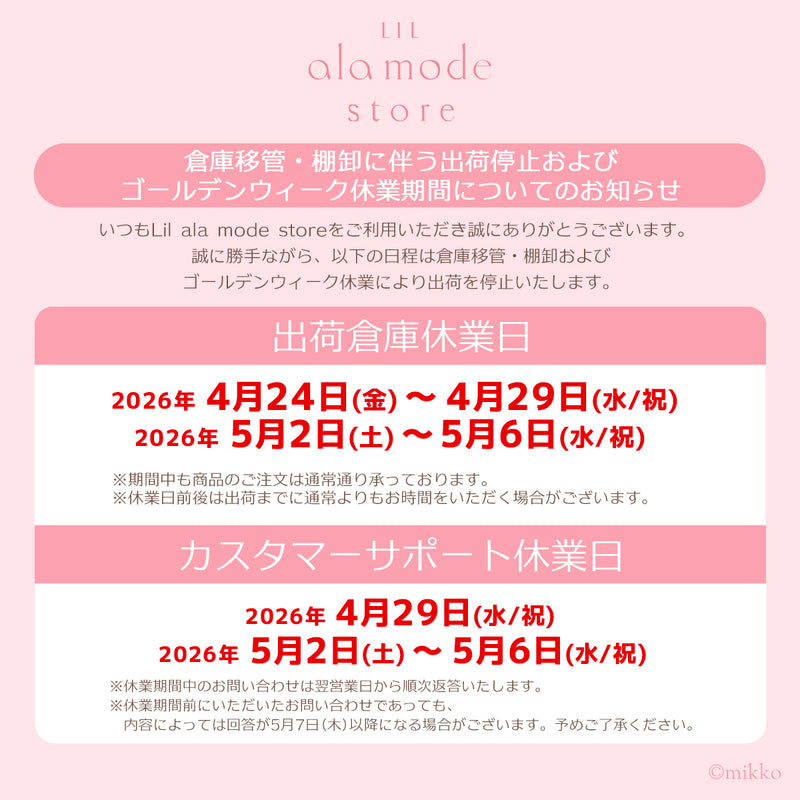 倉庫移管・棚卸に伴う出荷停止および ゴールデンウィーク休業期間についてのお知らせ